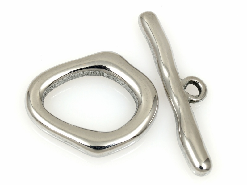 Замочек тогл из нержавеющей стали "Старинный серебряный круг 16 мм" темный родий 21x14x2мм