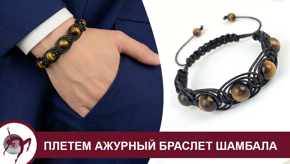 Браслет Шамбала своими руками с крупными бусинами из натуральных камней