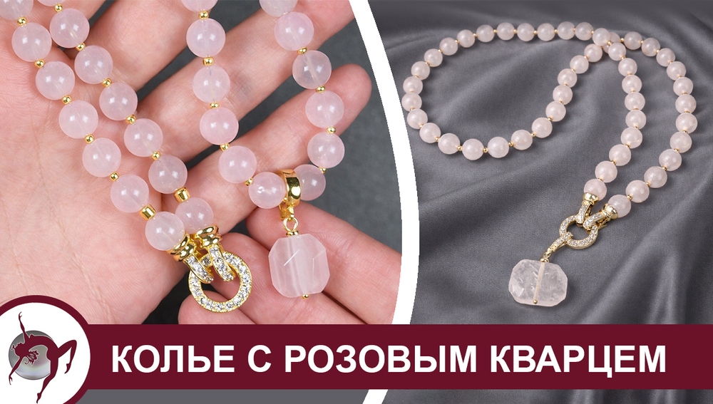 Мастер - класс, как собрать колье с розовым кварцем и замочком с чашечками