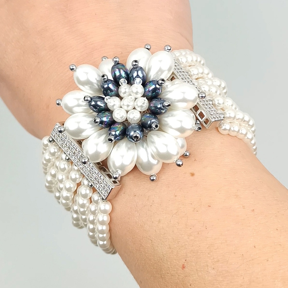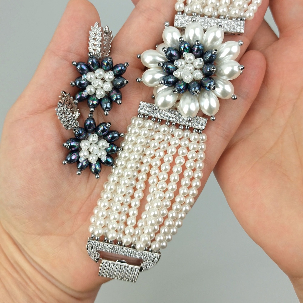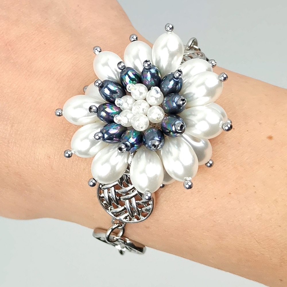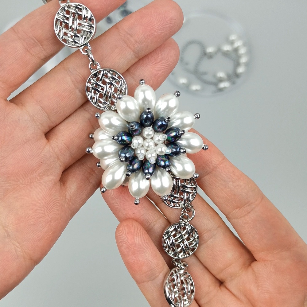 В этом мастер - классе мы покажем принцип сборки цветов из бусин, которыми можно украсить браслеты, серьги, кулоны и колье. Основой для сборки послужил подходящий коннектор с отверстиями, лепестки мы собрали из бусин майорки - круглых, рис, капля, и стеклянных бусин. Цветок собирался на прочную леску, узелки лески для надежности можно подпаять ювелирным паяльником.