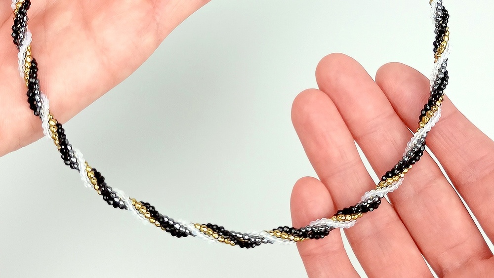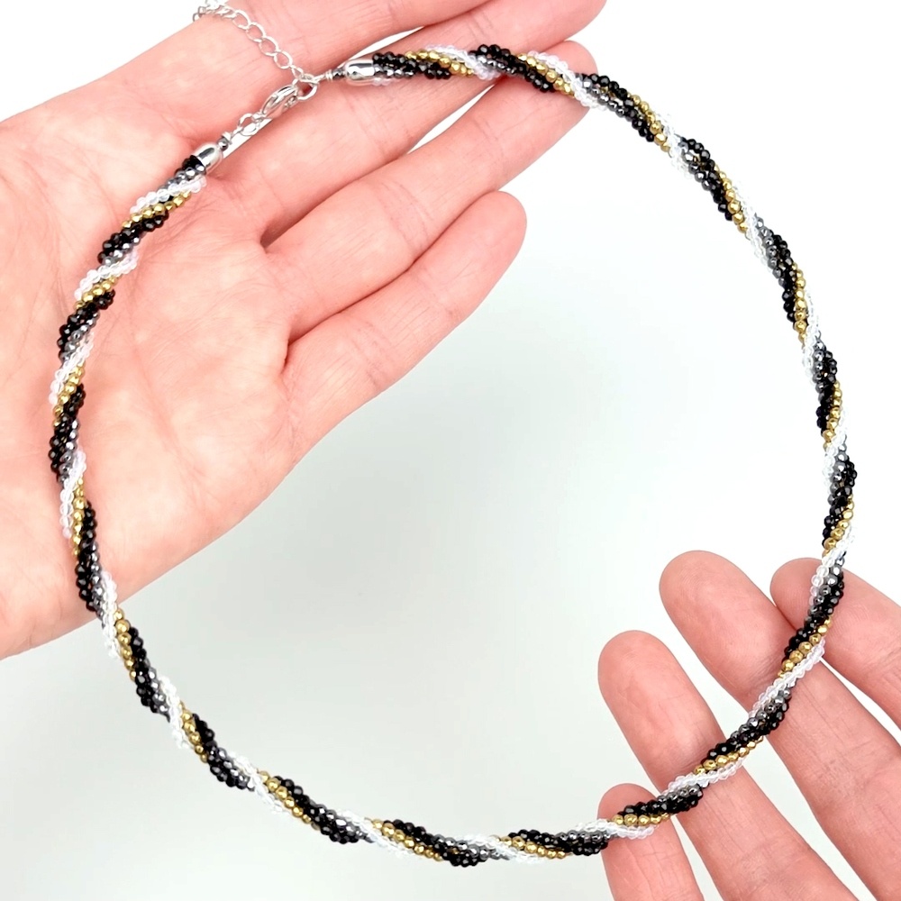 В этом мастер-классе показываем один из приемов скручивания и закрепления нитей в концевиках таким образом, чтобы чокер не раскрутился. Мы использовали в качестве основы для сборки ювелирную проволоку и регулируемый по длине замочек с коцевиками для шнуров.