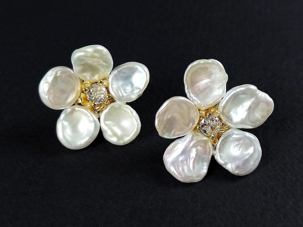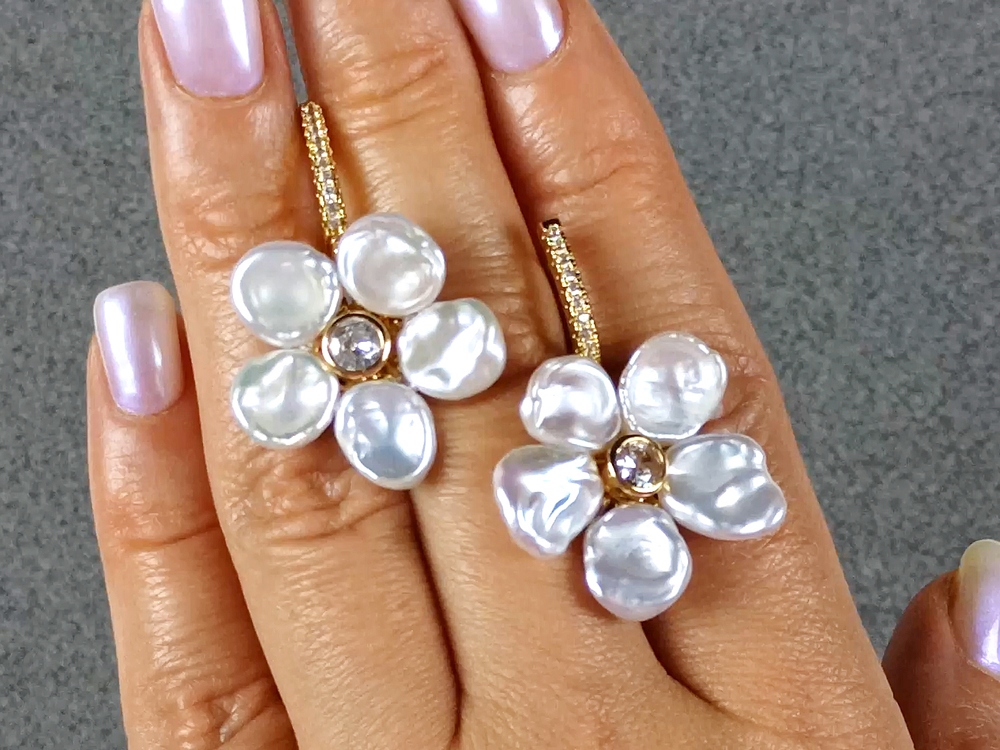 В мастер - классе мы показываем два варианта сборки серег с барочным жемчугом кеши, похожим на лепестки цветка. Именно поэтому такие серьги называют цветами. В качестве основы можно взять пусеты либо швензы с английским замком. Бусины жемчуга крепятся к основе с помощью прозрачной лески сечением 0.25 мм.