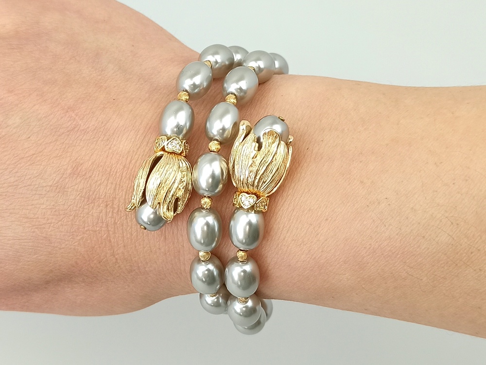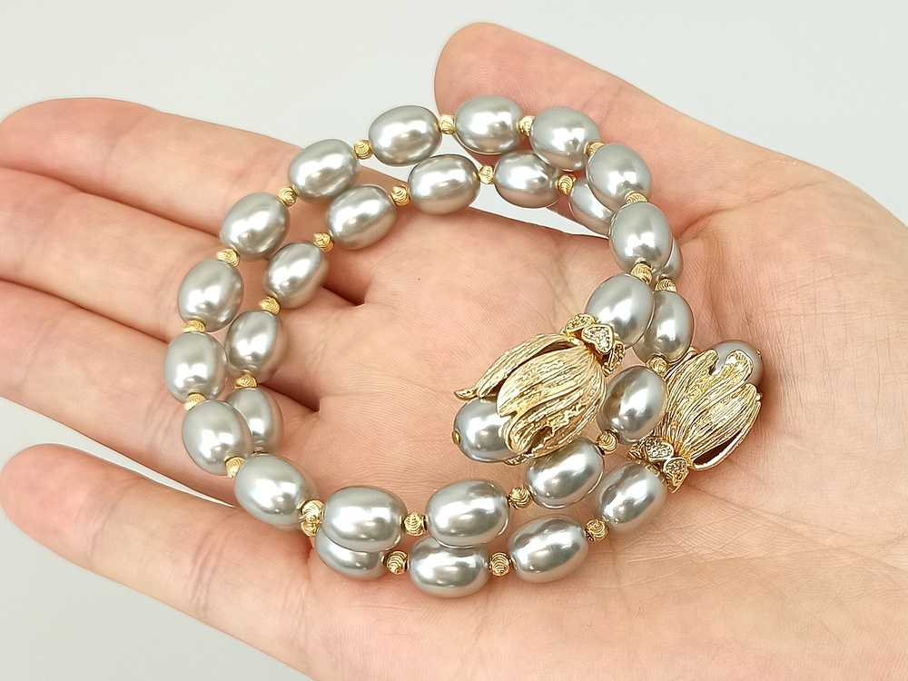 Как собрать браслет на мемори проволоке так, чтобы украсить концы красивой шапочкой в форме тюльпана с жемчужиной? Показываем последовательность шагов и примерку на руке. Сборка доступна любой начинающей рукодельнице, которая умеет работать с пинами.