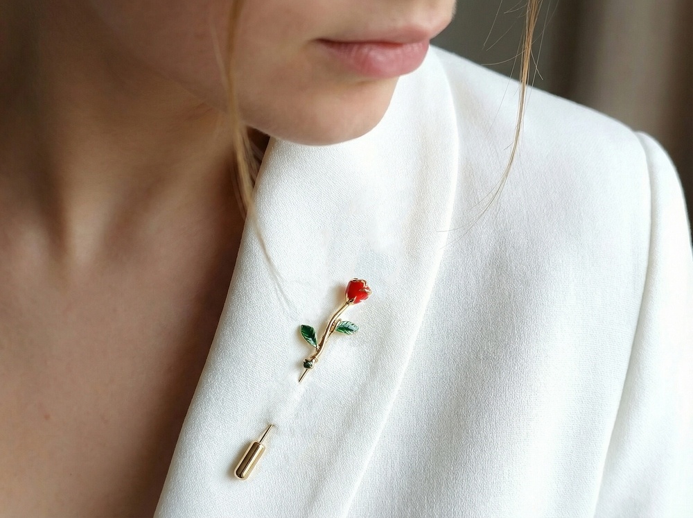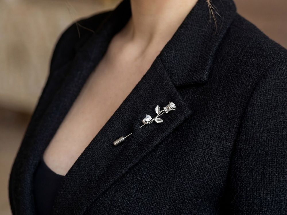 Такая брошь выглядит элегантно и современно. Носите её на лацкане жакета, пальто или кардигана, закрепляйте на воротнике рубашки, шарфе или платье. «Серебряная роза» уместна в деловых образах, на вечерних мероприятиях и как изящный акцент в повседневном стиле. Универсальное украшение, которое легко адаптируется под любой повод.