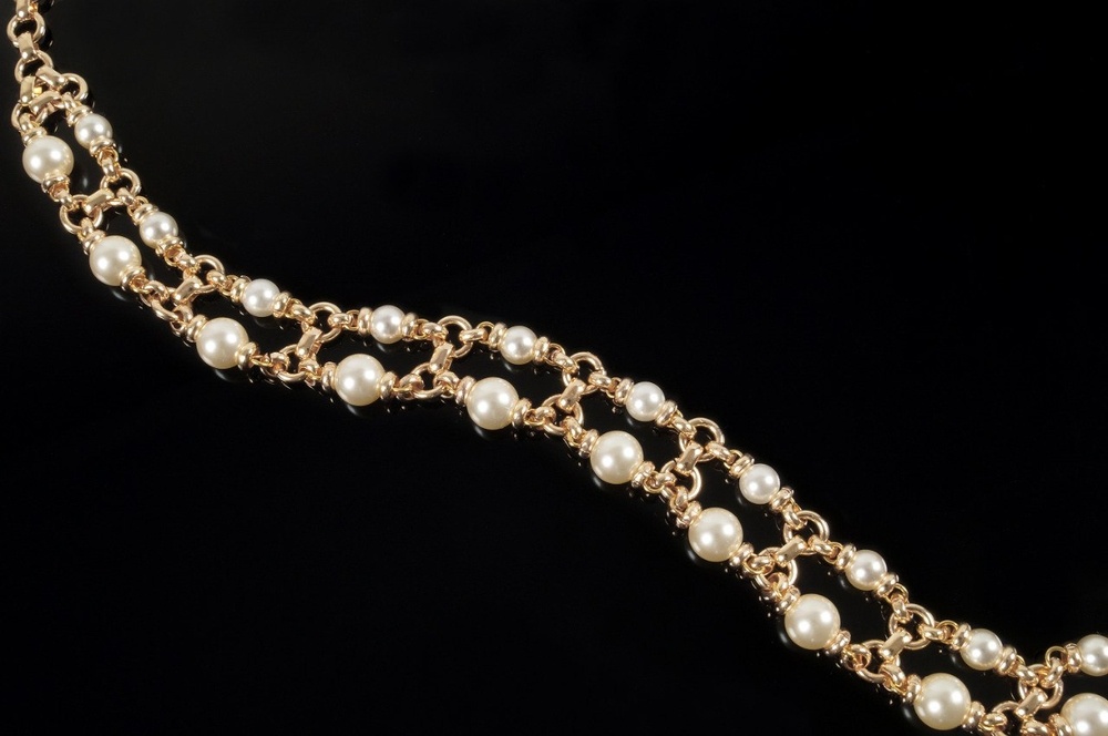 В основу нашего мастер - класса легло двухрядное колье Bulgari с жемчугом Аккоя - эффектное украшение, сочетающее четкость форм и мягкое благородное сияние. Ювелирные украшения Bulgari, сочетающие жемчуг и массивные цепи, формируются как отдельное направление в конце 1980 - начале 1990 годов.