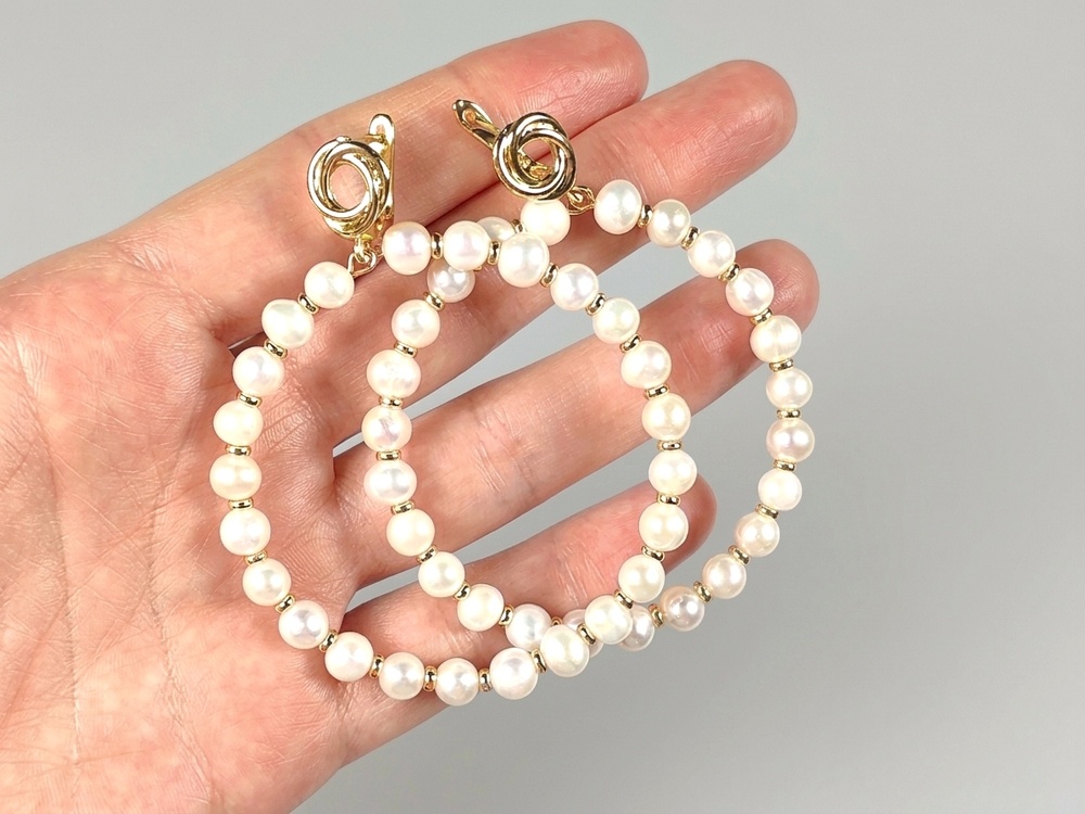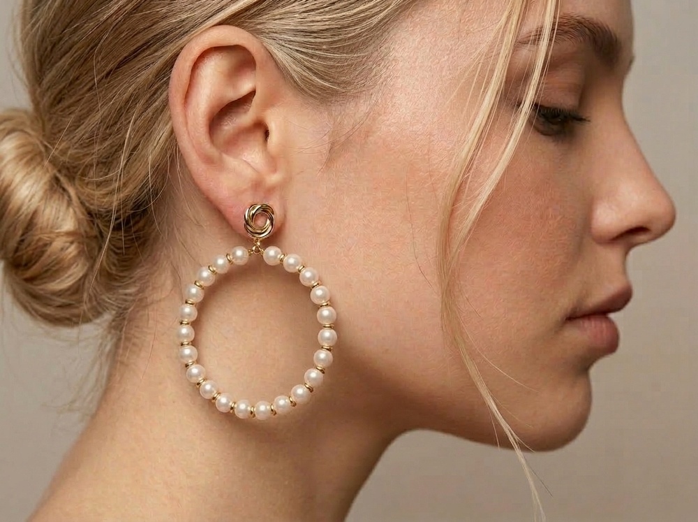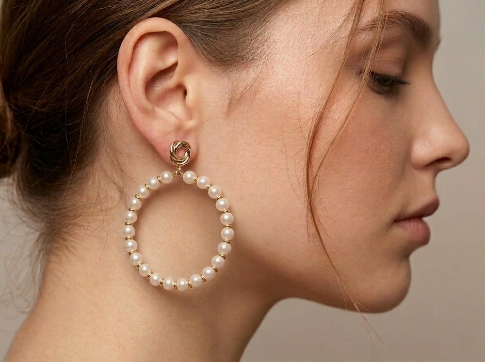 Легкие серьги кольца с мягким жемчужным сиянием универсальны: ни подходят к летним платьям, романтичным образам и повседневной классике, добавляя образу женственность и деликатный блеск натурального жемчуга.