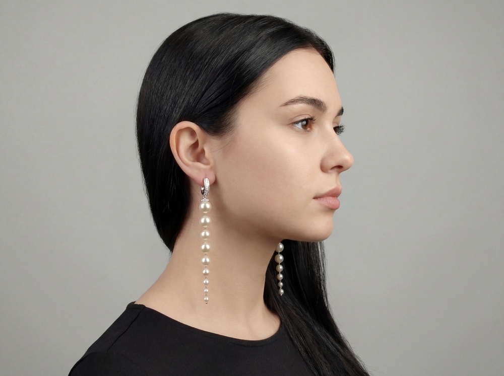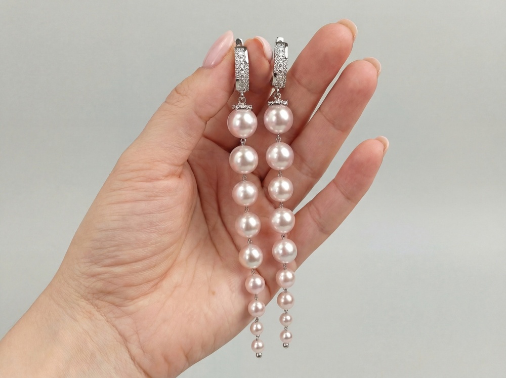 Серьги подойдут ценительницам элегантной классики и современного минимализма. Они гармонично дополнят вечернее платье, строгий костюм или лаконичную блузу. Жемчужная дорожка добавляет образу свет, утончённость и благородство, оставаясь универсальным акцентом как для торжественного выхода, так и для стильного повседневного комплекта.
