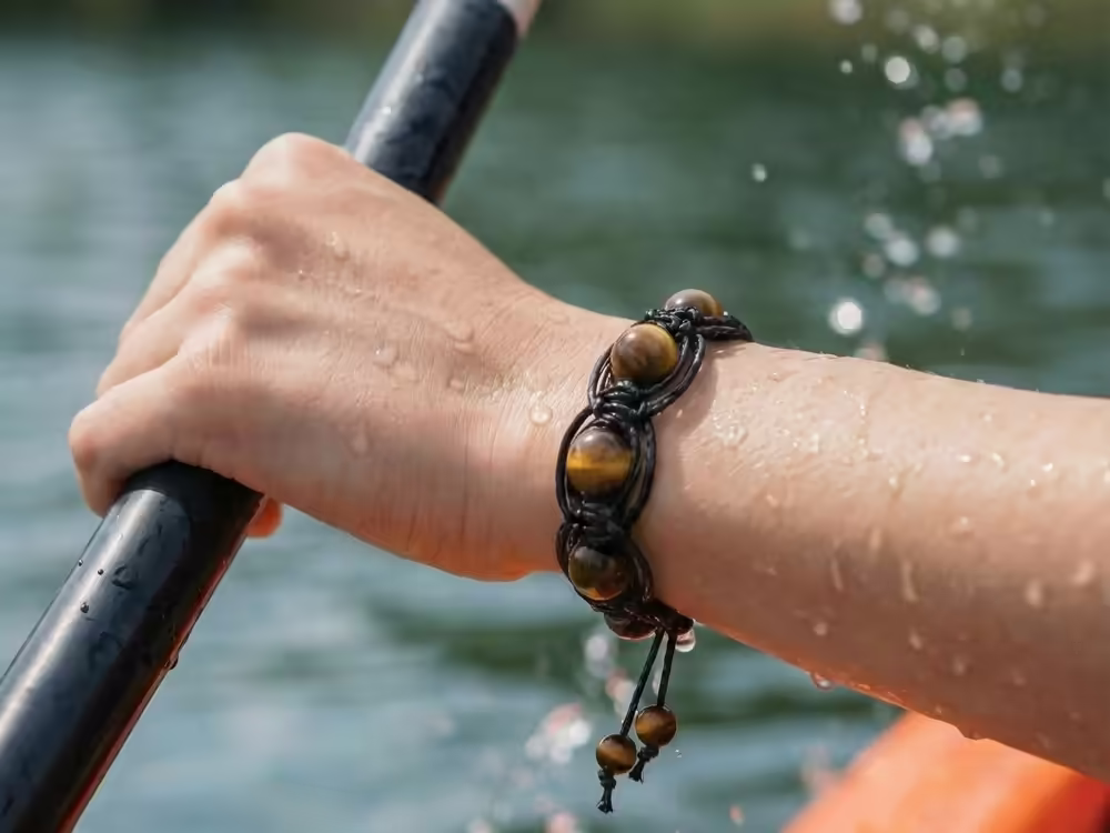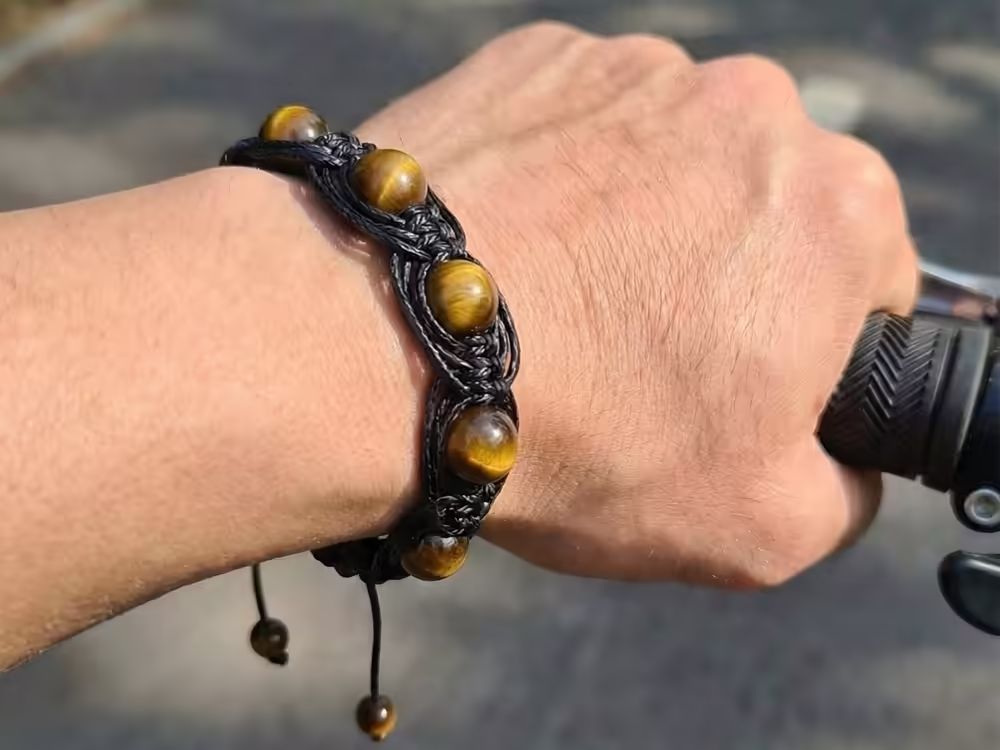 Тигровый глаз придает украшению выразительный характер и глубину цвета, подчеркивая мужественность и сдержанную эстетику аксессуара. При желании вы легко можете заменить бусины на другие натуральные камни: лазурит добавит благородного синего оттенка, амазонит - свежести и мягкости, рутиловый кварц - динамики и игры света, а малахит - насыщенного природного рисунка.
