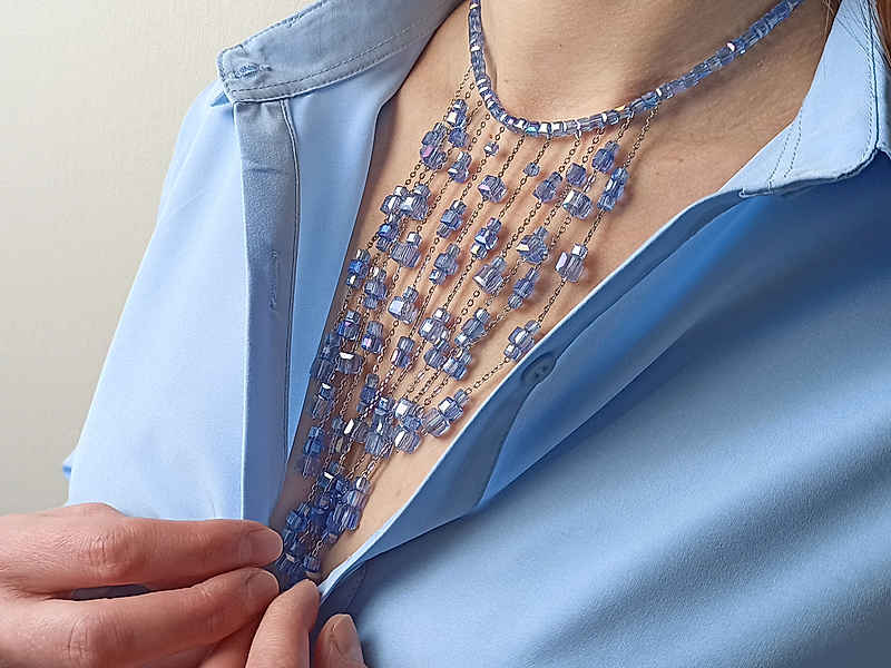 Набор материалов "Чокер и серьги из бусин аквамарина"
